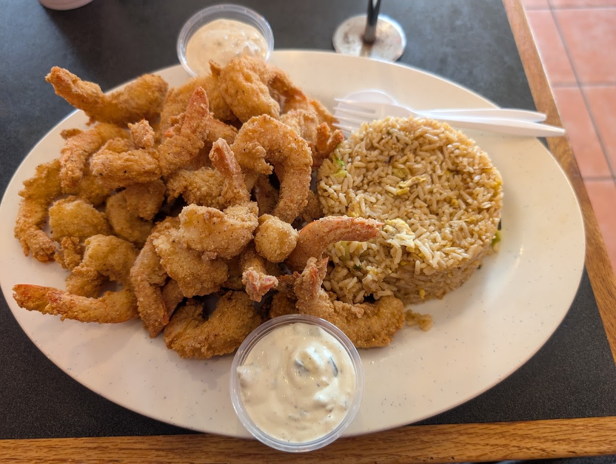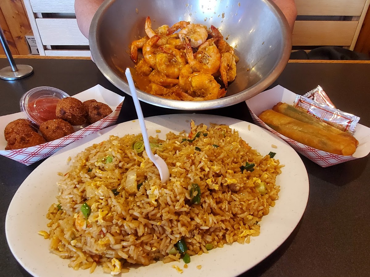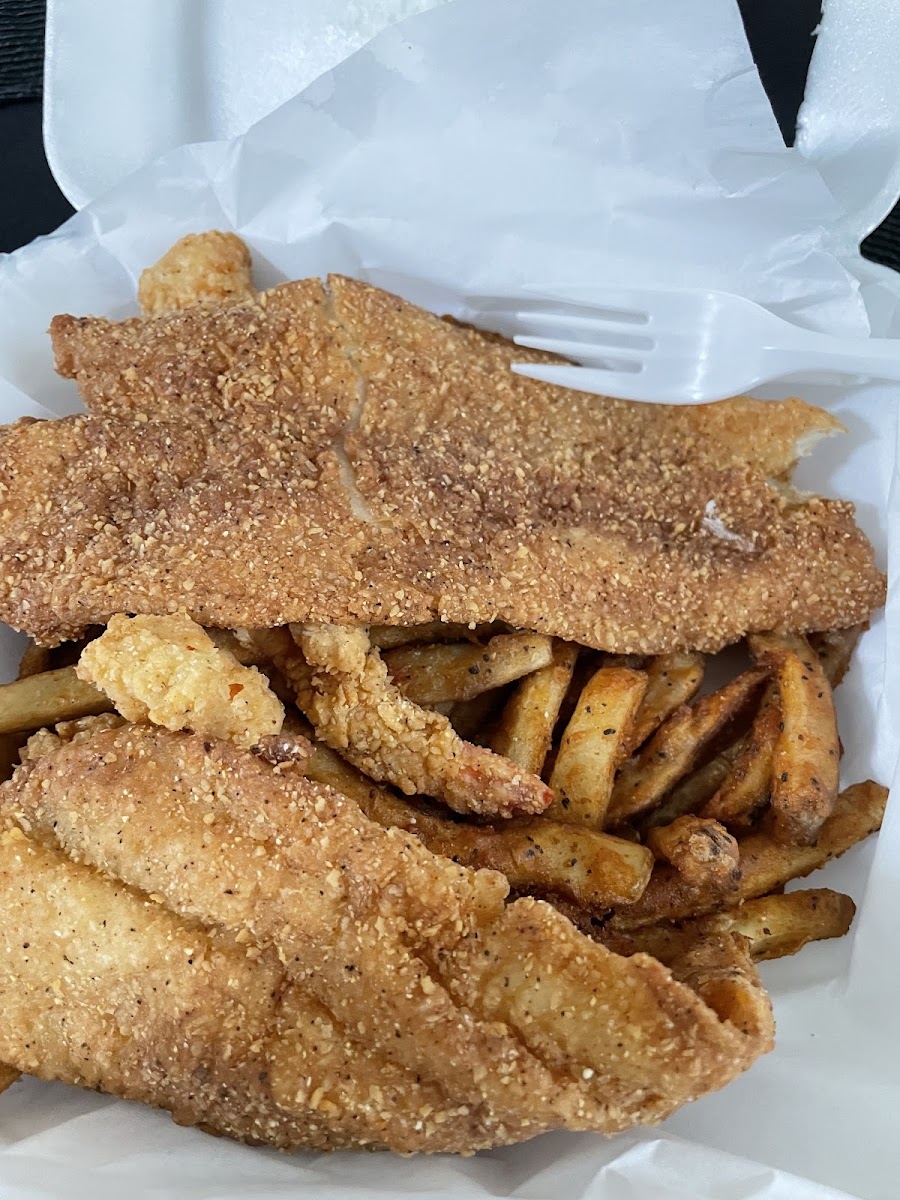 The menu reflects a mix of Southern seafood traditions and comfort food favorites. One of the most talked about plates is the grilled fish and shrimp dinner served with fried rice and steamed broccoli. It balances flavor and freshness while offering a lighter option compared to fried baskets.