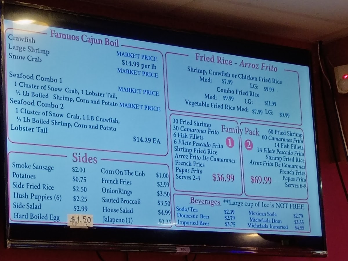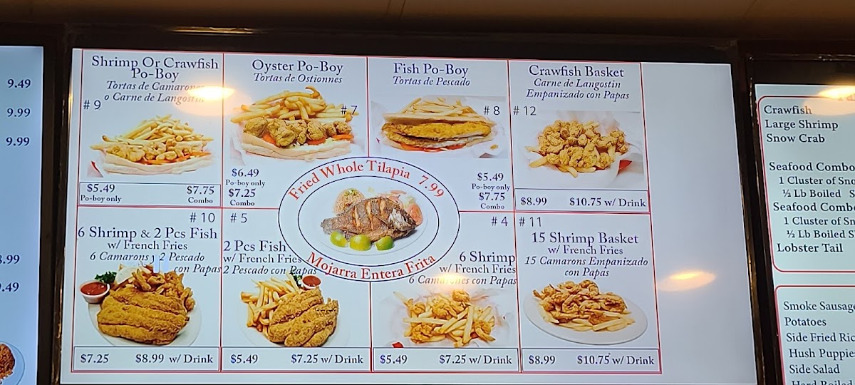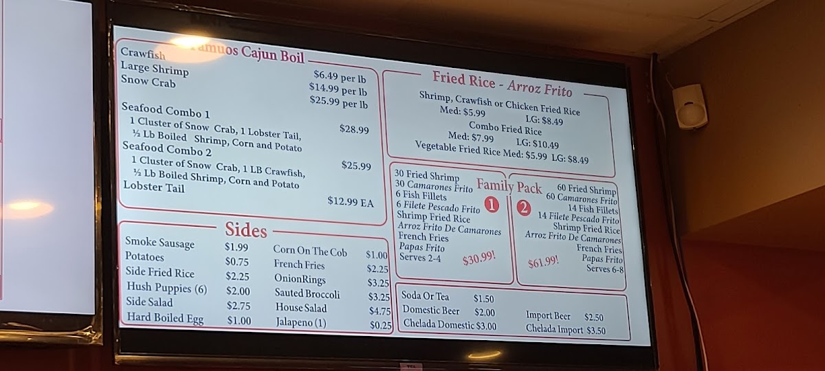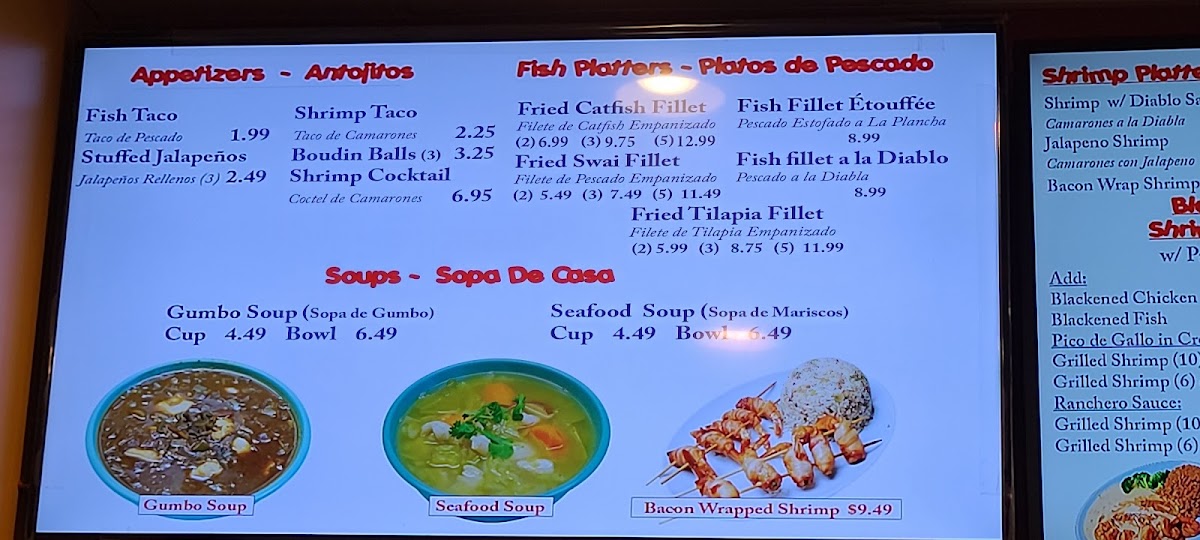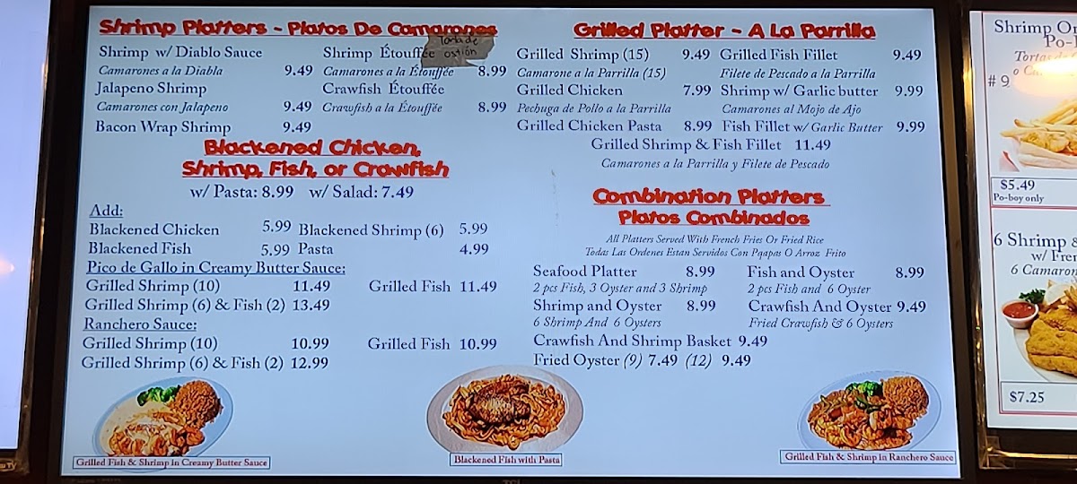 30 Fried shrimps + 6 Fish fillets + 1 Med Shrimp fried rice + French fries. (Served 2-4) 30 camarones fritos + 6 filetes de pescado frito + 1 Medium arroz frito de camarones + papas fritas. (sirve para 2-4)